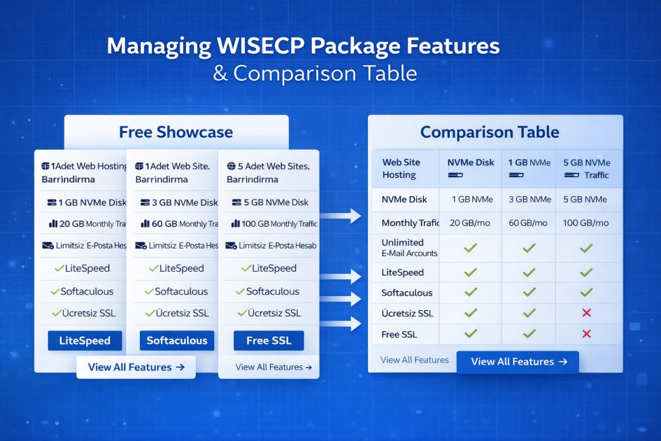 How to Manage WISECP Package Features: A Guide to Free Showcase Logic and Comparison Tables